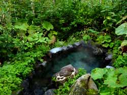 ready for the hot springs. The hostel's bath consists of an indoor hot pool and